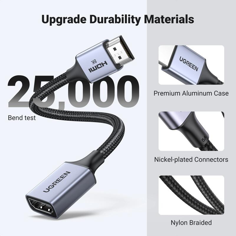 Cablul de extensie HDMI Ugreen HD165 8K este o soluție compactă și fiabilă pentru extinderea unei conexiuni HDMI existente, fără a compromite calitatea imaginii sau a sunetului. Conceput pentru configurații de înaltă performanță, acesta suportă video de înaltă definiție și rate de reîmprospătare ridicate, fiind potrivit pentru sisteme home cinema, platforme de jocuri și stații de lucru profesionale. Lungimea redusă de 15 cm ajută la reducerea tensiunii cablului și menține instalațiile curate și flexibile.