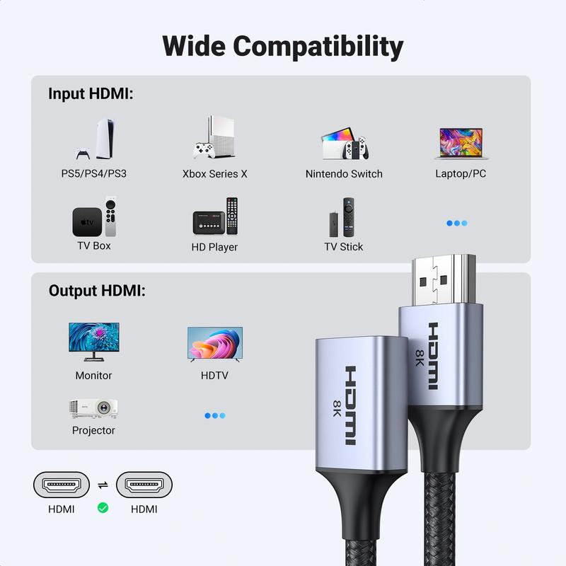 - Extensie HDMI tată-mamă pentru o acoperire ușoară a cablului fără pierderi de semnal