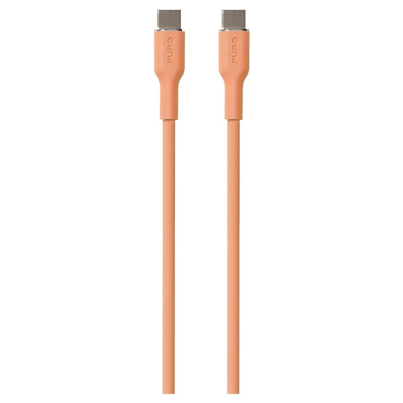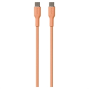 Cablu moale cu doi conectori USB-C, realizat din silicon moale la atingere, de culoare caise (portocaliu).