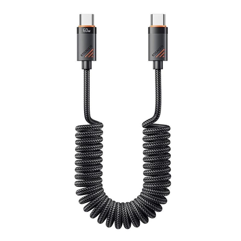 Cablu Essager Spring USB-C la USB-C de 1,8 m - Cablu de date spiralate cu încărcare rapidă PD de 60 W, cu cip E-Marker, 480 Mbps