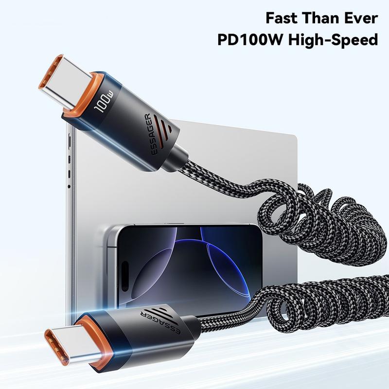 Cablul cu arc ESSAGER combină încărcarea rapidă, durabilitatea și un design practic în spirală, care ajută la organizarea cablurilor. Este ideal pentru utilizatorii care doresc un cablu USB-C fiabil, care se întinde atunci când este necesar, dar rămâne compact atunci când nu este utilizat, fiind deosebit de convenabil pentru utilizarea în mașină și pentru configurații de încărcare portabile.