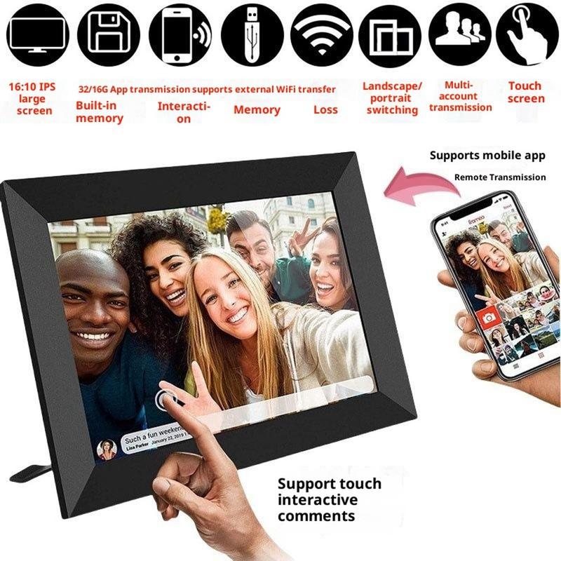 Această ramă foto digitală WiFi de 10.1" oferă o calitate clară a afișajului, partajare wireless inteligentă, stocare generoasă și conectivitate multi-utilizator, fiind soluția modernă perfectă pentru familii, birouri sau ca un cadou grijuliu.