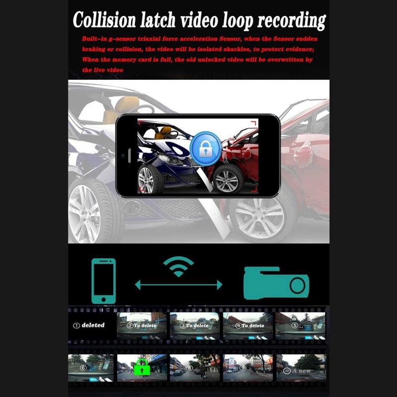 Cameră auto DVR G10 1080P HD - Înregistrator video WiFi, vedere pe timp de noapte, unghi larg de 140°, monitor de parcare