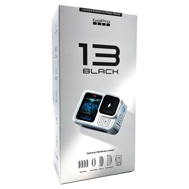 - Accesorii incluse: Cameră HERO13 Black, baterie Enduro, suport adeziv curbat, cataramă de montare + șurub pentru degetul mare, cablu USB-C