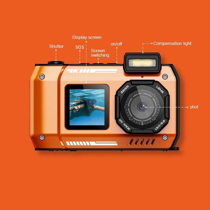Cameră de acțiune impermeabilă D50 cu ecran dublu - Cameră sport de 65MP, clasă de protecție IP68, cu ecrane de 2,88 inci și 1,44 inci