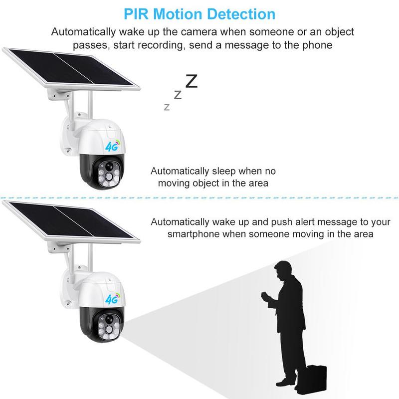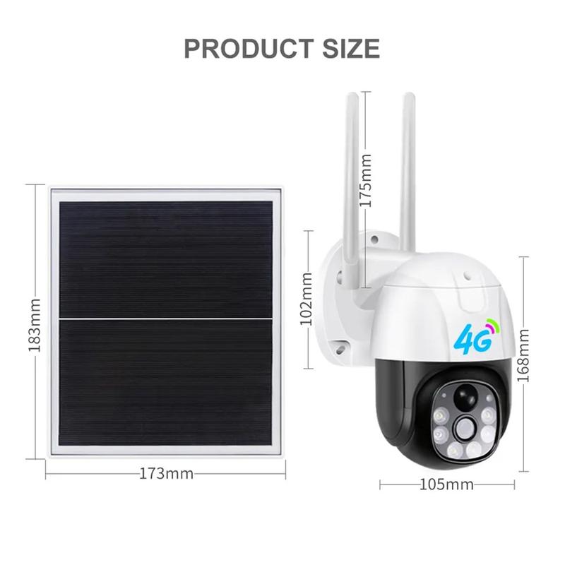 Securizați locațiile îndepărtate fără WiFi sau cabluri de alimentare cu camera de securitate V380 4G Solar PTZ. Concepută pentru supravegherea în aer liber, se conectează prin LTE 4G și funcționează cu un sistem solar + baterie cu consum redus, fiind ideală pentru ferme, grădini, cabane, șantiere de construcții și oriunde un router sau o sursă de alimentare nu sunt practice. Senzorul de 3MP înregistrează imagini clare cu compresie H.265 eficientă, în timp ce viziunea nocturnă inteligentă comută automat între infraroșu și lumină albă pentru o vizibilitate mai bună după lăsarea întunericului.