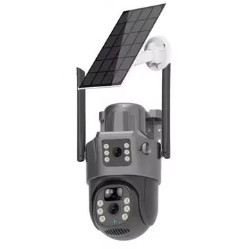 Cameră de supraveghere solară pentru exterior V380 4G - Cameră PTZ cu două obiective de 4 MP, cu viziune nocturnă color și detectare a mișcării