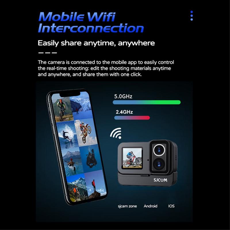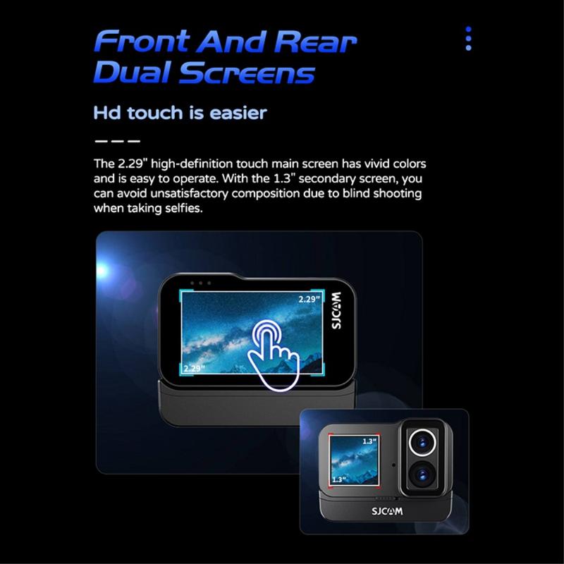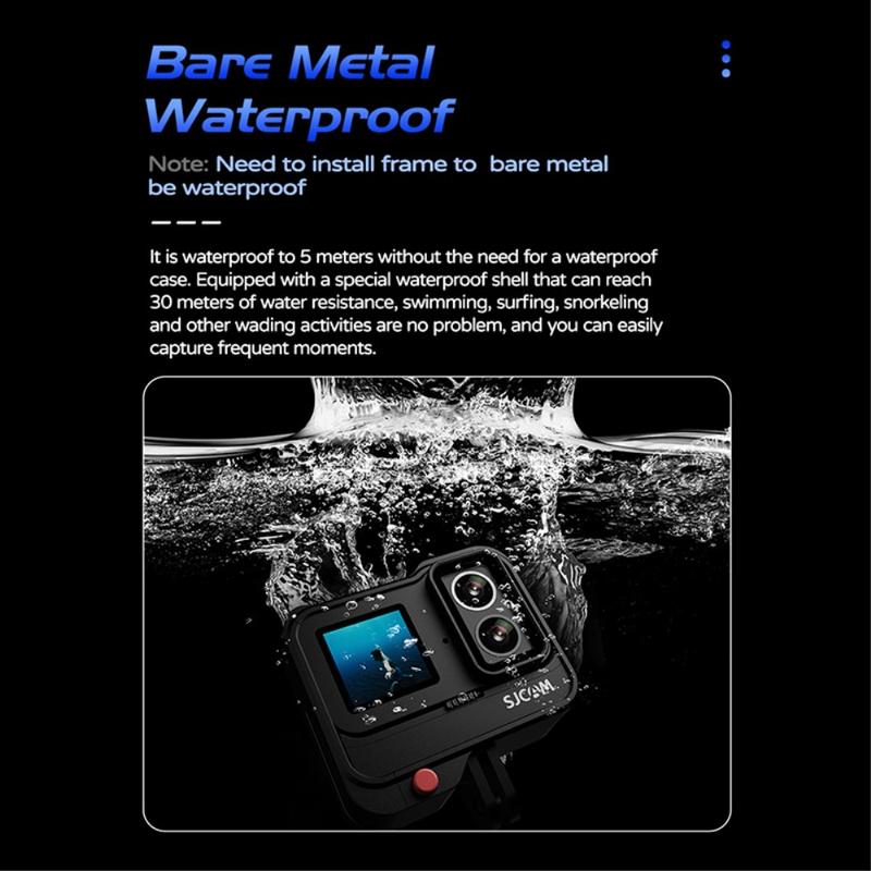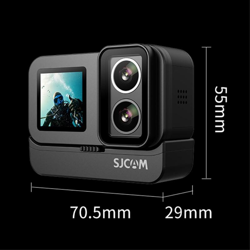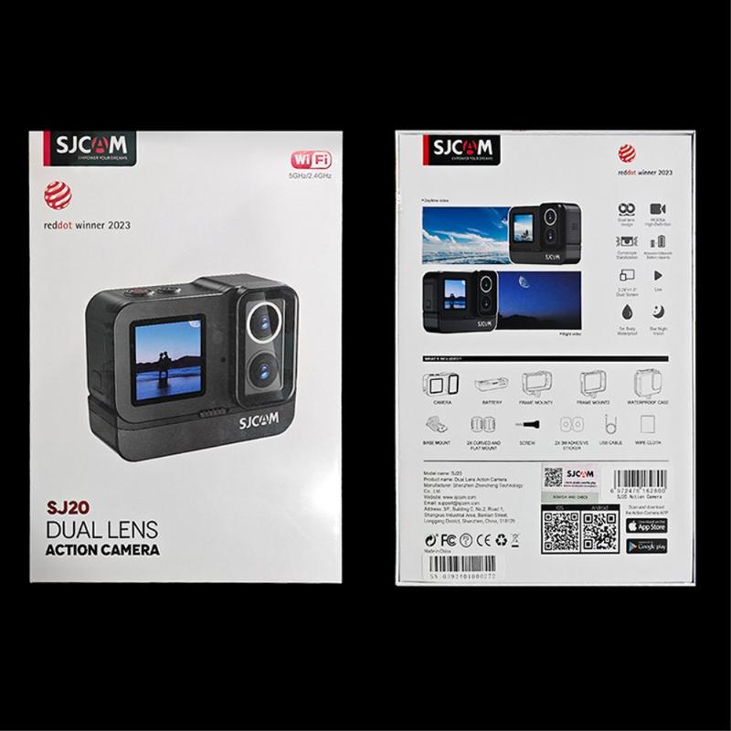 Cameră de acțiune SJCAM SJ20 cu lentilă dublă - 4K30, ecran dublu, lentilă cu vizibilitate nocturnă, stabilizare pe 6 axe, rezistentă la apă până la 5 m (30 m cu husă), Wi-Fi 2,4/5 GHz, USB-C