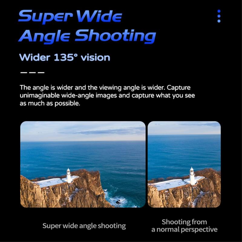 - Unghi larg: unghiul obiectivului de 135 de grade pentru fotografii captivante