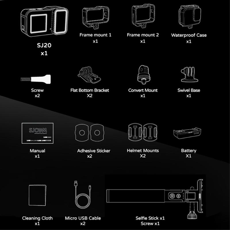 - 1 x cameră de acțiune SJCAM SJ20 cu lentilă dublă