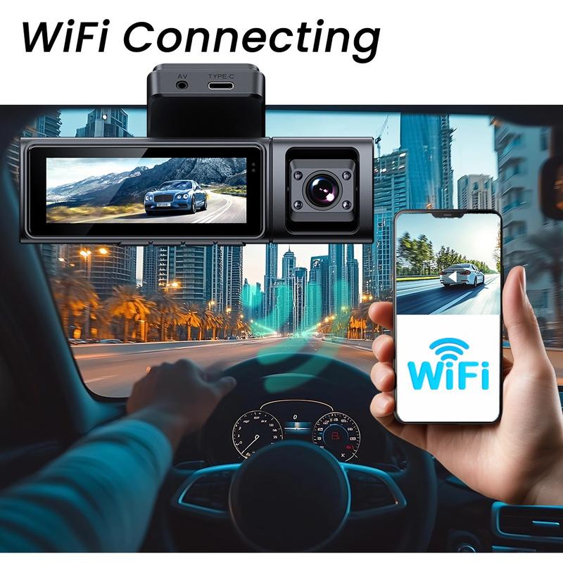 Cameră video pentru bord F9 cu 3 canale și GPS - cameră frontală 4K, cameră interioară și posterioară 1080P, control prin aplicație WiFi și viziune nocturnă