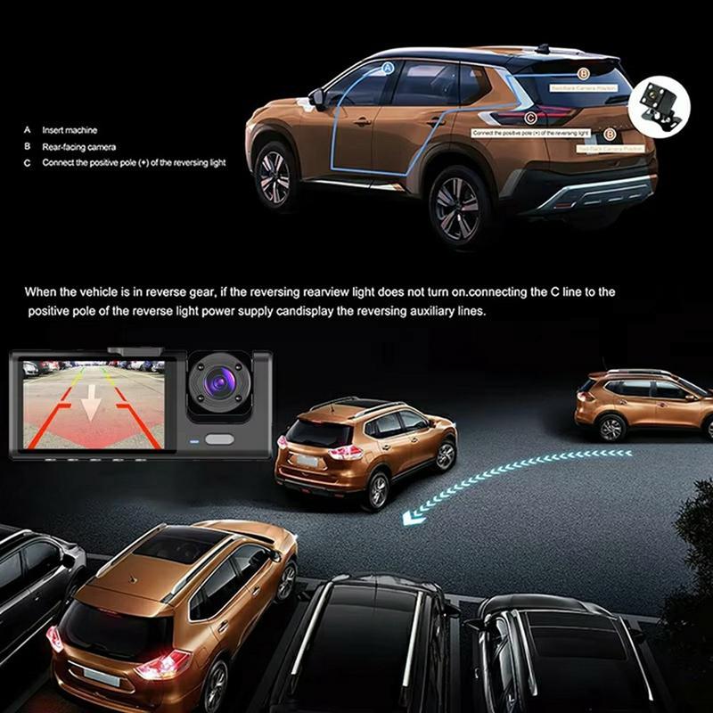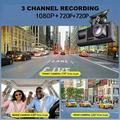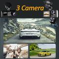 Cameră video pentru mașină cu trei obiective și WiFi 1080P - Cameră frontală/interioară/spate DVR cu monitor de parcare, senzor G și viziune nocturnă