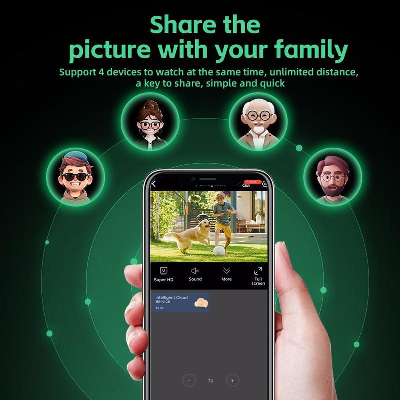 Microfonul încorporat acceptă înregistrarea audio și comunicarea bidirecțională, iar suportul atât pentru stocarea pe card TF, cât și pentru stocarea în cloud vă oferă mai multă flexibilitate la salvarea înregistrărilor. Viziunea nocturnă alb-negru cu infraroșu ajută, de asemenea, la menținerea vizibilității în condiții de întuneric, astfel încât să puteți continua monitorizarea chiar și atunci când luminile sunt stinse.