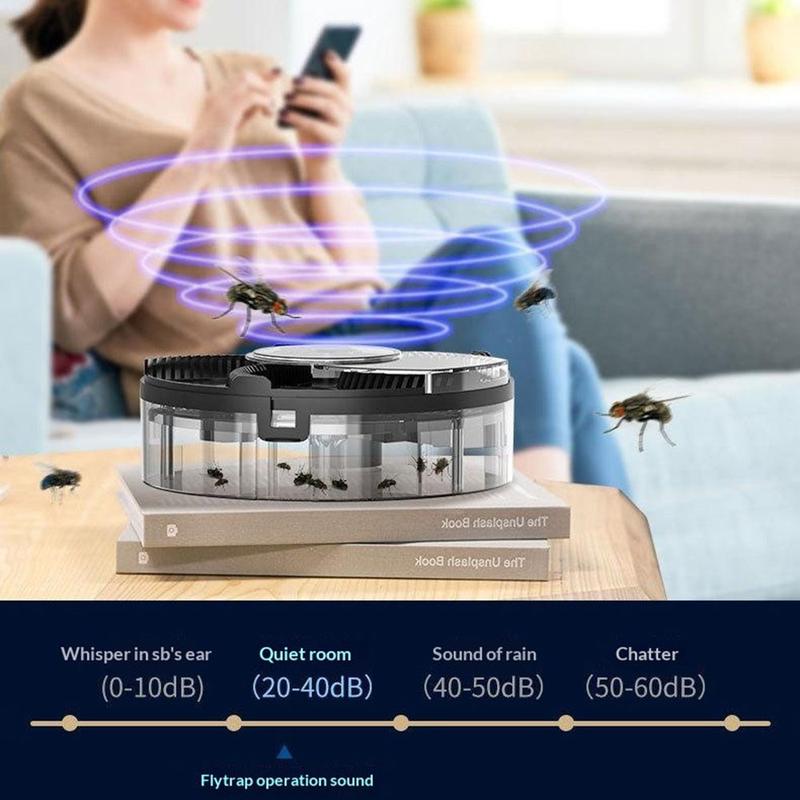 Asigurați-vă că spațiile interioare sunt mai confortabile și mai igienice cu această capcană automată rotativă pentru muște, reîncărcabilă prin USB. Concepută pentru o utilizare zilnică silențioasă și practică, această capcană de uz casnic folosește o metodă fizică de capturare, bazată pe tehnologia de aspirație rotativă, pentru a captura insectele zburătoare fără a recurge la mirosuri puternice sau la instalații mai complicate. Este o soluție utilă pentru bucătării, săli de mese, cafenele, spații de preparare a alimentelor și alte medii interioare în care muștele pot constitui o pacoste.