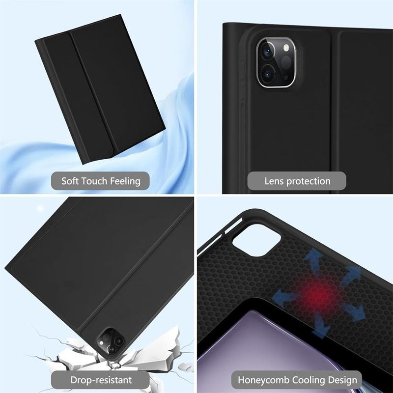 Îmbunătățiți iPad Air 13 2026/2025/2024, iPad Pro 12.9 2022/2021/2020/2018 cu carcasa cu tastatură Bluetooth, un accesoriu multifuncțional 2 în 1 care combină protecția, productivitatea și stilul. Fabricată din poliuretan premium, această carcasă elegantă oferă protecție completă împotriva zgârieturilor, șocurilor și amprentelor, menținând în același timp un aspect profesional. Tastatura Bluetooth se conectează wireless pentru o tastare lină și receptivă, în timp ce touchpad-ul integrat suportă controlul multi-gesture pentru o navigare fără efort. Dispunând de o tastatură retroiluminată, puteți tasta confortabil chiar și în medii cu luminozitate scăzută. Suportul reglabil încorporat oferă un unghi de vizualizare ergonomic, fiind perfect pentru tastare, streaming sau citire. Concepută pentru afaceri, călătorii sau utilizare zilnică, această carcasă cu tastatură transformă tableta dvs. într-o stație de lucru portabilă.