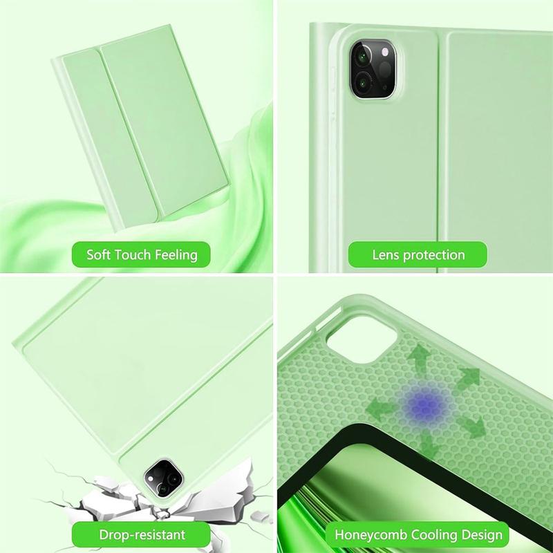 Îmbunătățiți iPad Air 13 2026/2025/2024, iPad Pro 12.9 2022/2021/2020/2018 cu carcasa cu tastatură Bluetooth, un accesoriu multifuncțional 2 în 1 care combină protecția, productivitatea și stilul. Fabricată din poliuretan premium, această carcasă elegantă oferă protecție completă împotriva zgârieturilor, șocurilor și amprentelor, menținând în același timp un aspect profesional. Tastatura Bluetooth se conectează wireless pentru o tastare lină și receptivă, în timp ce touchpad-ul integrat suportă controlul multi-gesture pentru o navigare fără efort. Dispunând de o tastatură retroiluminată, puteți tasta confortabil chiar și în medii cu luminozitate scăzută. Suportul reglabil încorporat oferă un unghi de vizualizare ergonomic, fiind perfect pentru tastare, streaming sau citire. Concepută pentru afaceri, călătorii sau utilizare zilnică, această carcasă cu tastatură transformă tableta dvs. într-o stație de lucru portabilă.