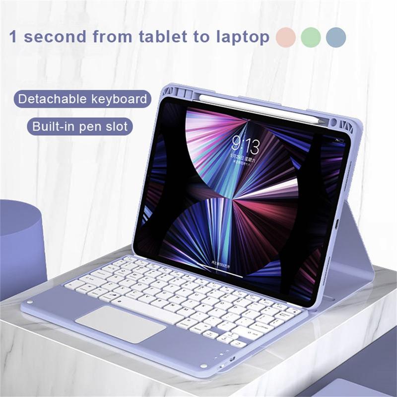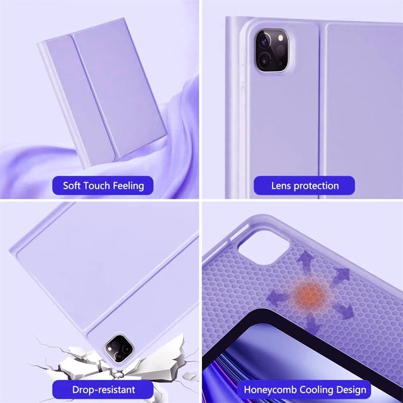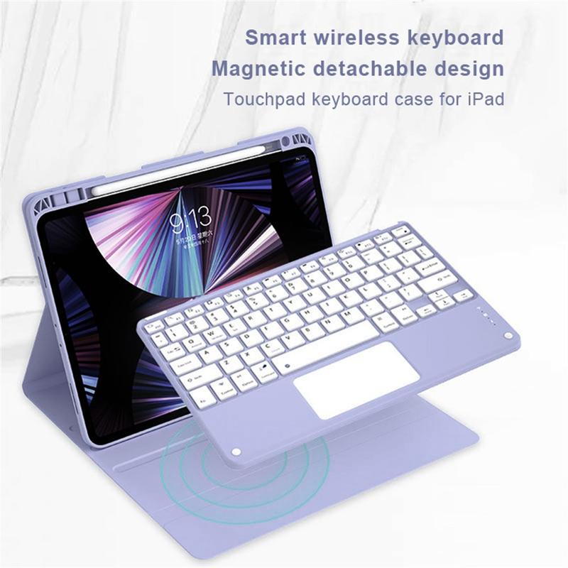 Îmbunătățiți iPad Air 13 2026/2025/2024, iPad Pro 12.9 2022/2021/2020/2018 cu carcasa cu tastatură Bluetooth, un accesoriu multifuncțional 2 în 1 care combină protecția, productivitatea și stilul. Fabricată din poliuretan premium, această carcasă elegantă oferă protecție completă împotriva zgârieturilor, șocurilor și amprentelor, menținând în același timp un aspect profesional. Tastatura Bluetooth se conectează wireless pentru o tastare lină și receptivă, în timp ce touchpad-ul integrat suportă controlul multi-gesture pentru o navigare fără efort. Dispunând de o tastatură retroiluminată, puteți tasta confortabil chiar și în medii cu luminozitate scăzută. Suportul reglabil încorporat oferă un unghi de vizualizare ergonomic, fiind perfect pentru tastare, streaming sau citire. Concepută pentru afaceri, călătorii sau utilizare zilnică, această carcasă cu tastatură transformă tableta dvs. într-o stație de lucru portabilă.