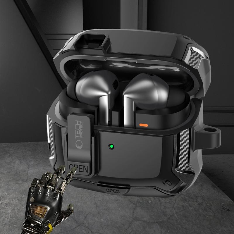 Carcasă Tech-Protect Carbonox pentru Samsung Galaxy Buds3, Galaxy Buds3 Pro, Galaxy Buds3 FE - Protecție robustă cu breloc