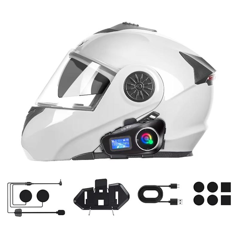 Cască de motocicletă Q58Max cu sistem de intercom Bluetooth - Intercom pentru motocicliști cu rază de acțiune de 500m, radio FM, lumină LED și microfon fix