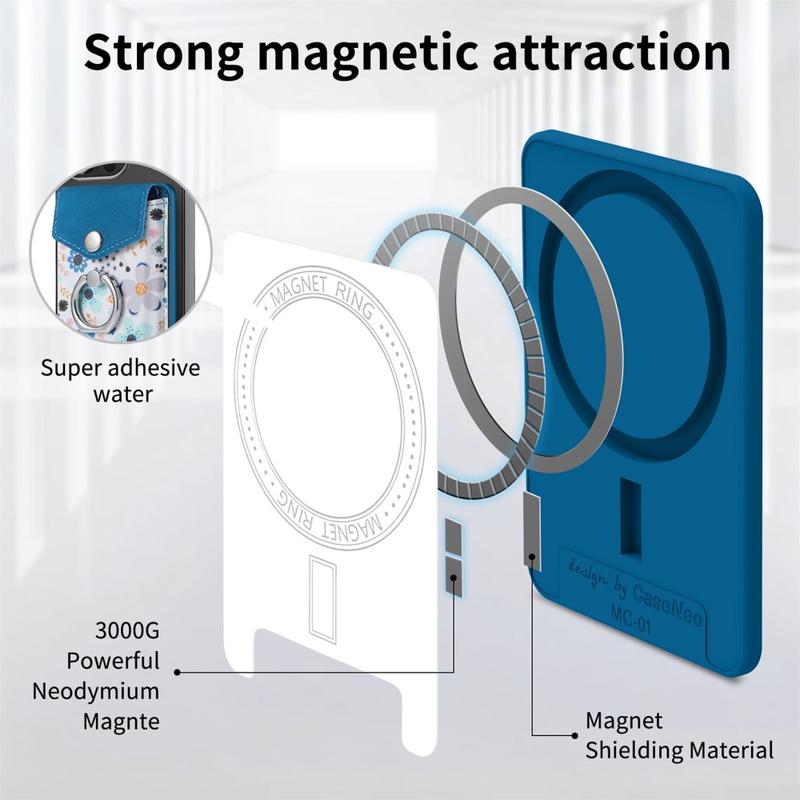 CaseNeo MC-W3 Suport magnetic pentru carduri cu suport inelar - Portofel modelat compatibil cu MagSafe