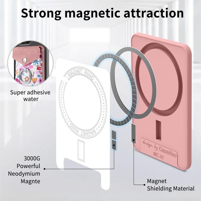 CaseNeo MC-W3 Suport magnetic pentru carduri cu suport inelar - Portofel modelat compatibil cu MagSafe