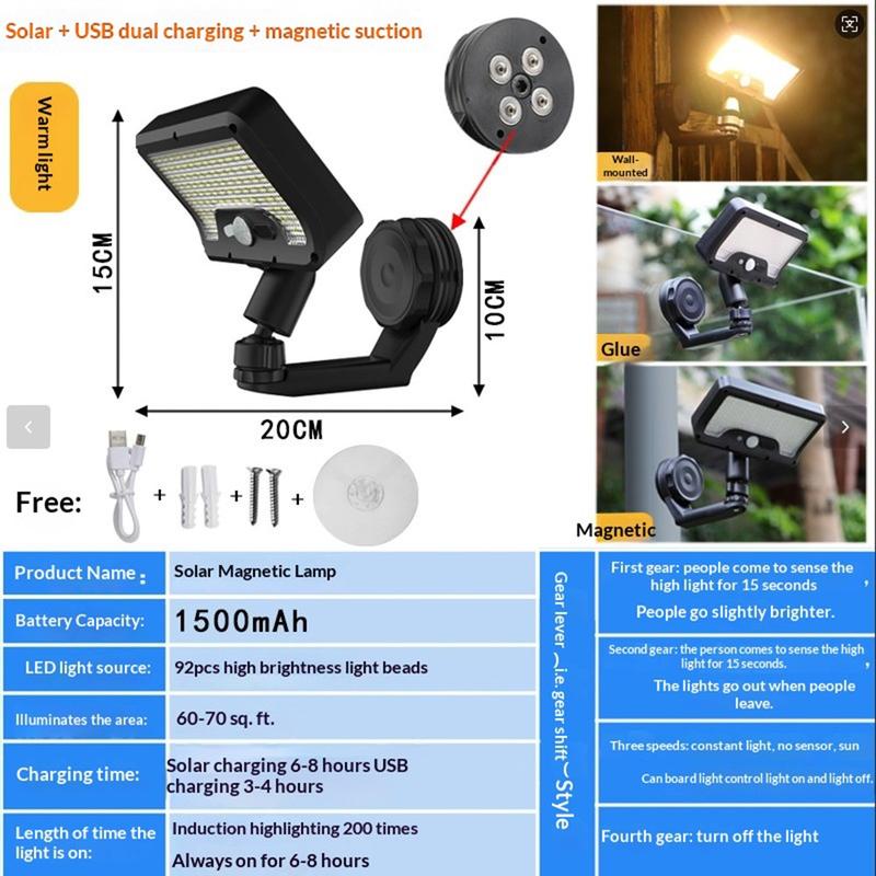 Iluminați spațiile exterioare mai eficient cu lampa magnetică de perete cu senzor de mișcare CCP0144 cu 92 de LED-uri. Concepută pentru grădini, terase, alei, căi de acces, garduri, intrări și alte spații exterioare, această lampă solară combină detectarea inteligentă a mișcării, instalarea flexibilă și o construcție rezistentă la intemperii într-o singură soluție practică de iluminat. Matricea sa de 92 de LED-uri oferă o iluminare puternică atunci când aveți cea mai mare nevoie, contribuind la îmbunătățirea atât a vizibilității, cât și a securității în exterior.