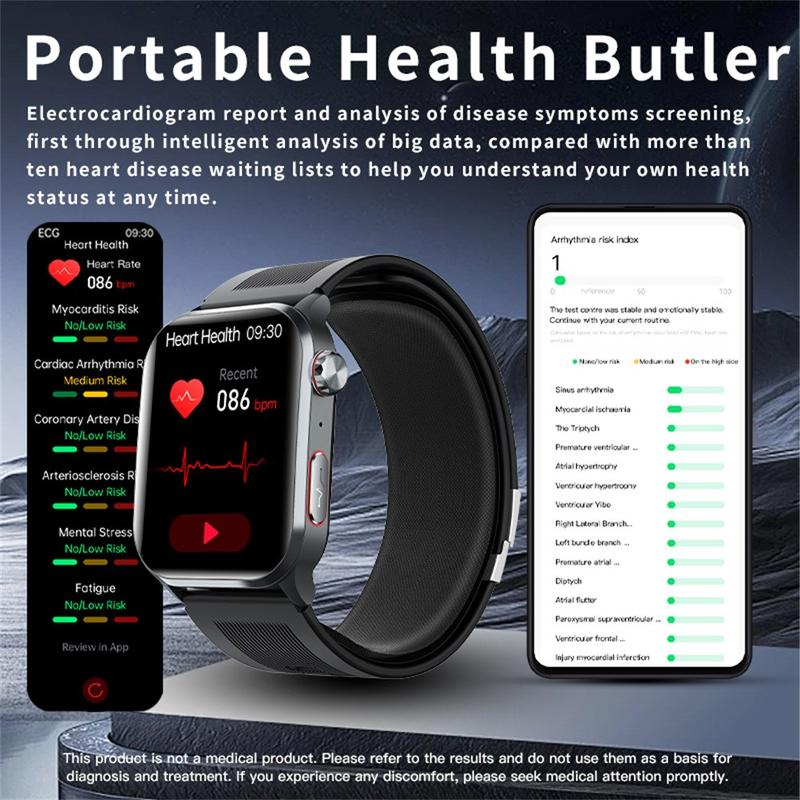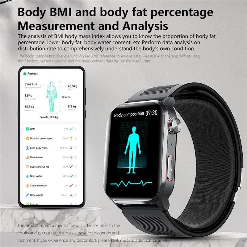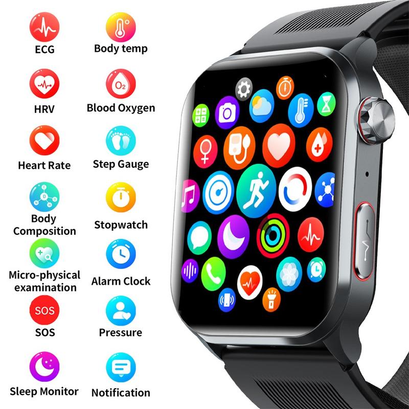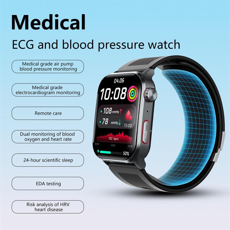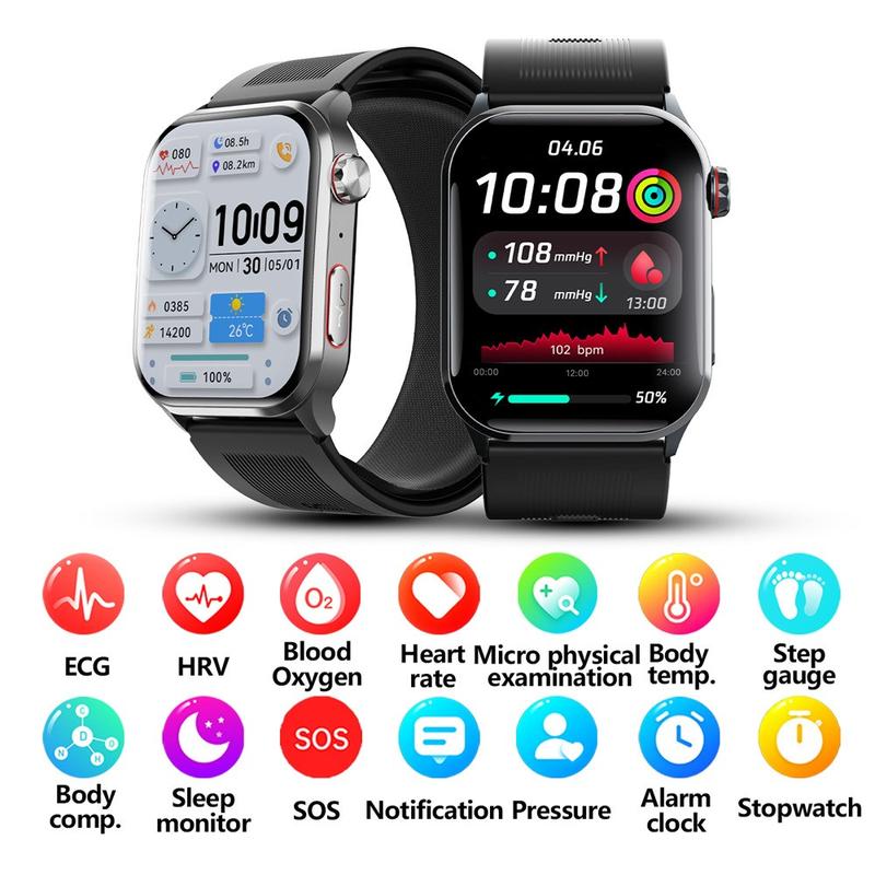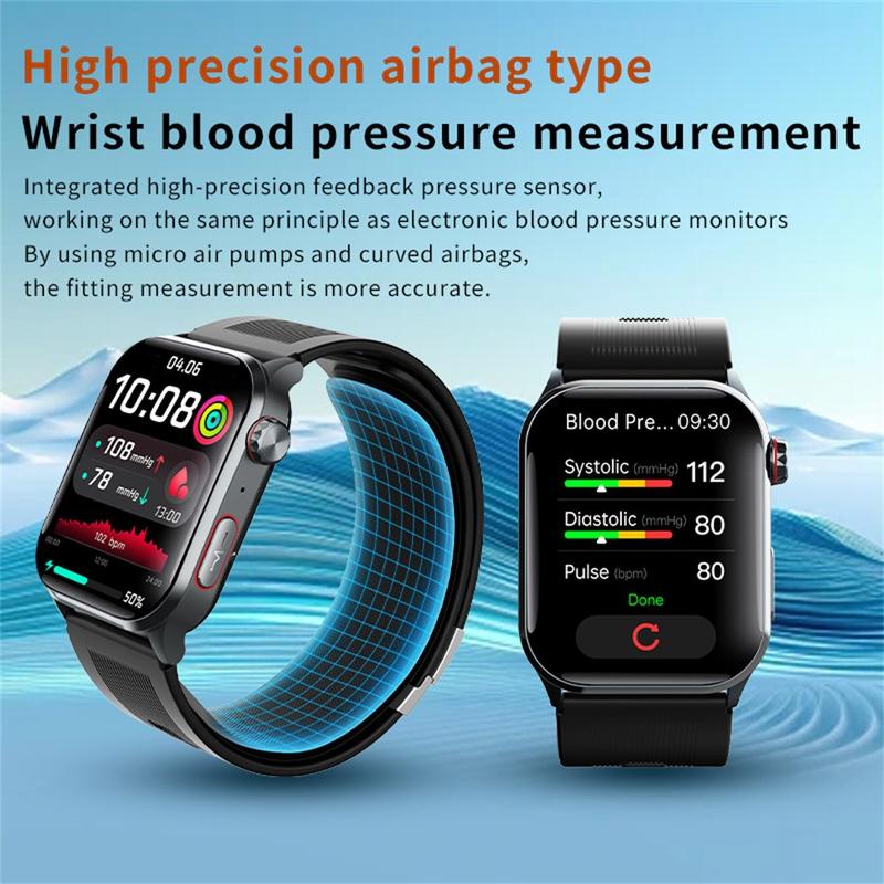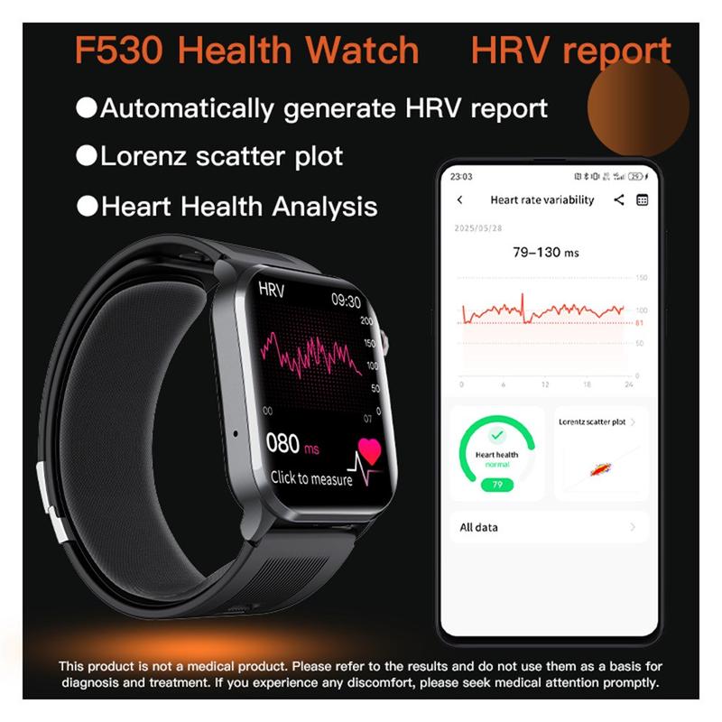 Ceas inteligent F530 cu presiune arterială cu pompă de aer, ECG, ritm cardiac și urmărire a somnului - alarmă SOS de cădere, ecran IPS de 2,1"