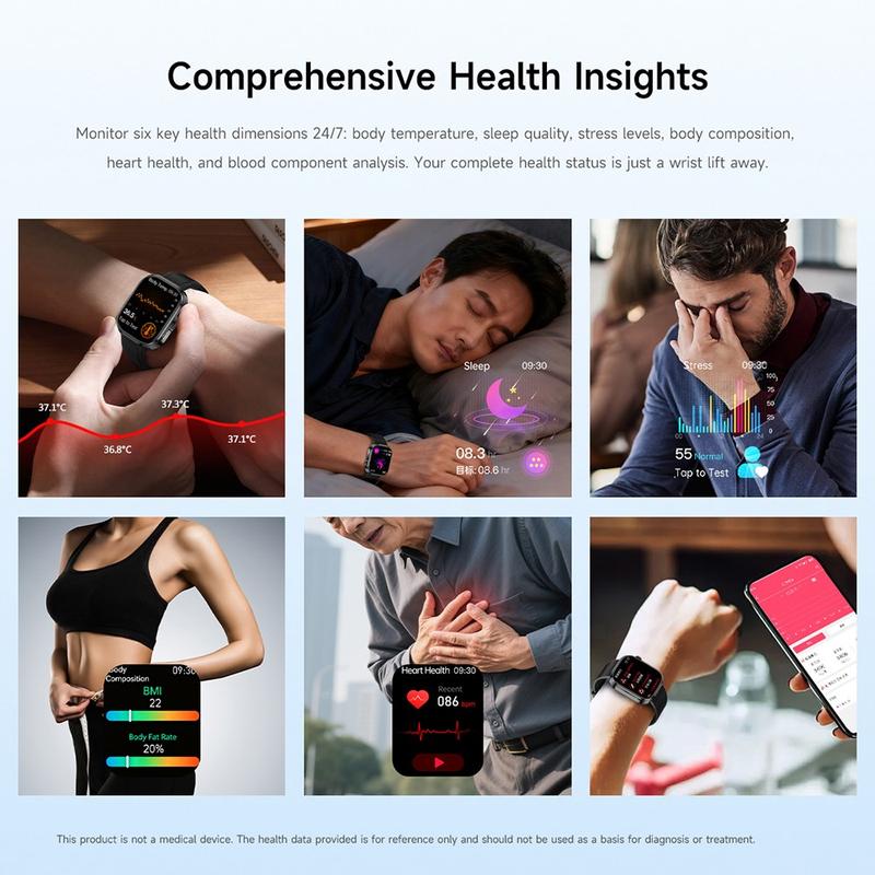 Ceasul inteligent GE52 combină monitorizarea avansată a sănătății cu confortul modern, oferind măsurarea ECG, urmărirea ritmului cardiac, detectarea oxigenului din sânge, monitorizarea temperaturii și multe altele - toate de la încheietura mâinii. Ecranul său mare HD de 1,88 inchi oferă imagini clare și vibrante care depășesc ecranele tradiționale de 1,7 inchi, făcând utilizarea zilnică mai clară și mai plăcută.