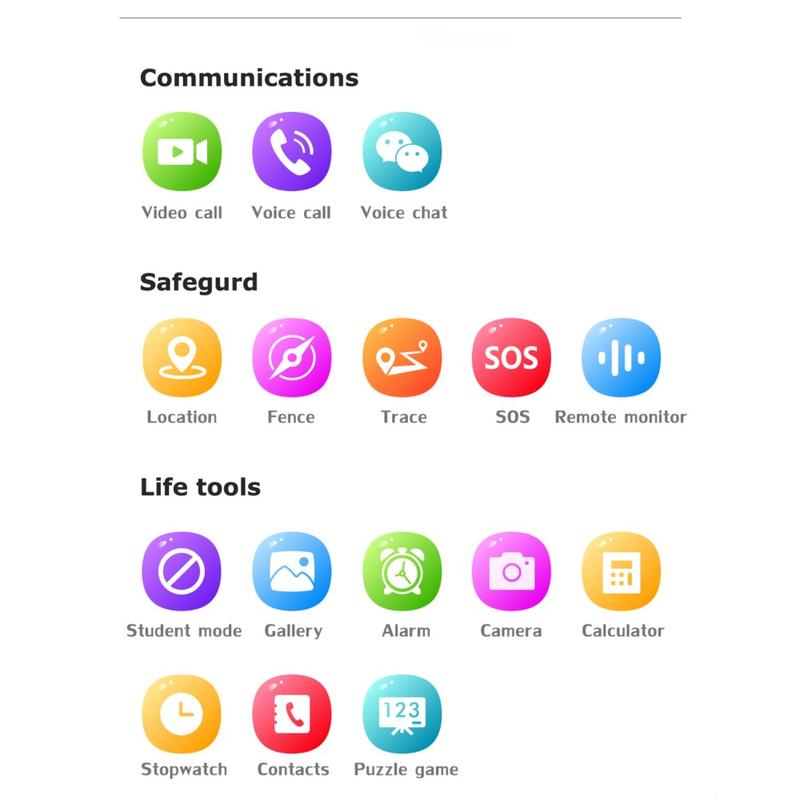Ecranul tactil IPS de 1,4 inci oferă o afișare clară și colorată, în timp ce combinația dintre GPS, WiFi și localizare LBS contribuie la o localizare mai precisă. Cu suport pentru apeluri vocale, apeluri video, monitorizare de la distanță și acces la internet prin WiFi și 4G, ceasul îi ajută pe copii să rămână conectați pe tot parcursul zilei. Pedometrul încorporat încurajează, de asemenea, obiceiuri zilnice mai active, iar cureaua moale din silicon de calitate alimentară este concepută pentru a fi purtată confortabil în fiecare zi.