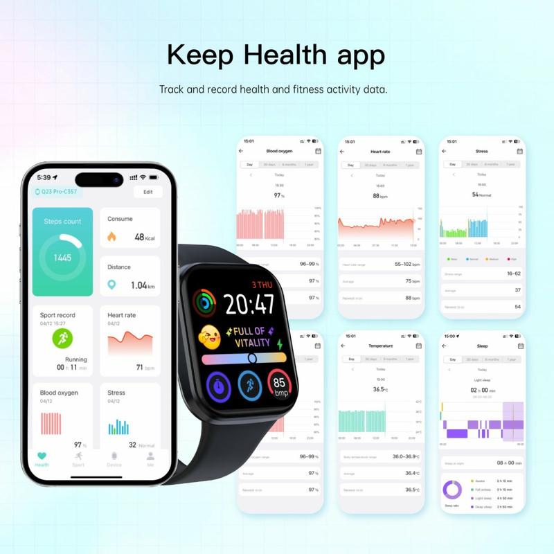Ceasul inteligent Q23Pro oferă un ecran color mare de 1.83 inci, performanță fluidă și monitorizare fiabilă a sănătății și a condiției fizice pentru utilizarea zilnică. Proiectat cu o carcasă subțire integrată și sticlă curbată 3D, acesta acceptă apeluri Bluetooth, controlul muzicii și peste 100 de cadrane personalizabile. Cu o durată lungă de viață a bateriei, monitorizare completă a sănătății și compatibilitate extinsă cu Android și iOS, este un ceas inteligent practic pentru a rămâne conectat și activ.