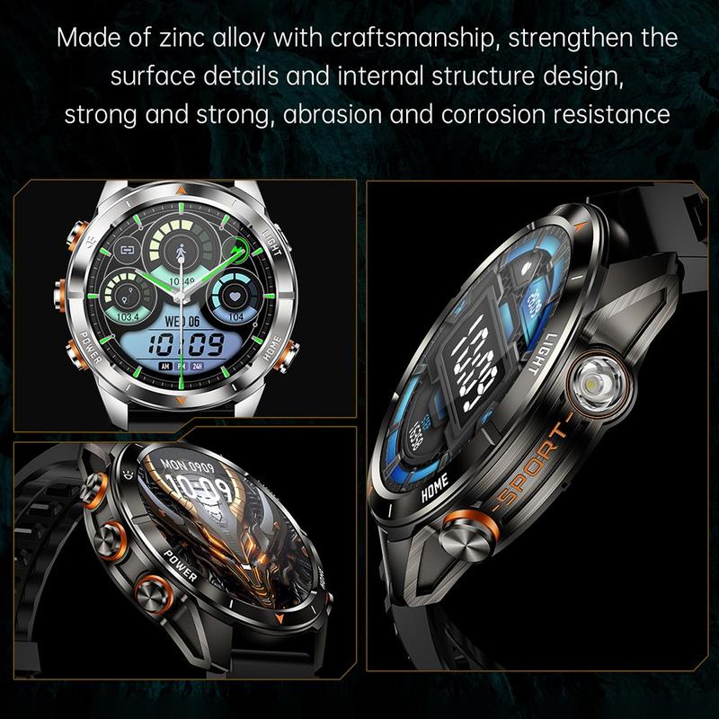 Ceas inteligent sportiv KT80 - 3ATM rezistent la apă, apelare Bluetooth, ecran tactil HD de 1.46", lanternă integrată