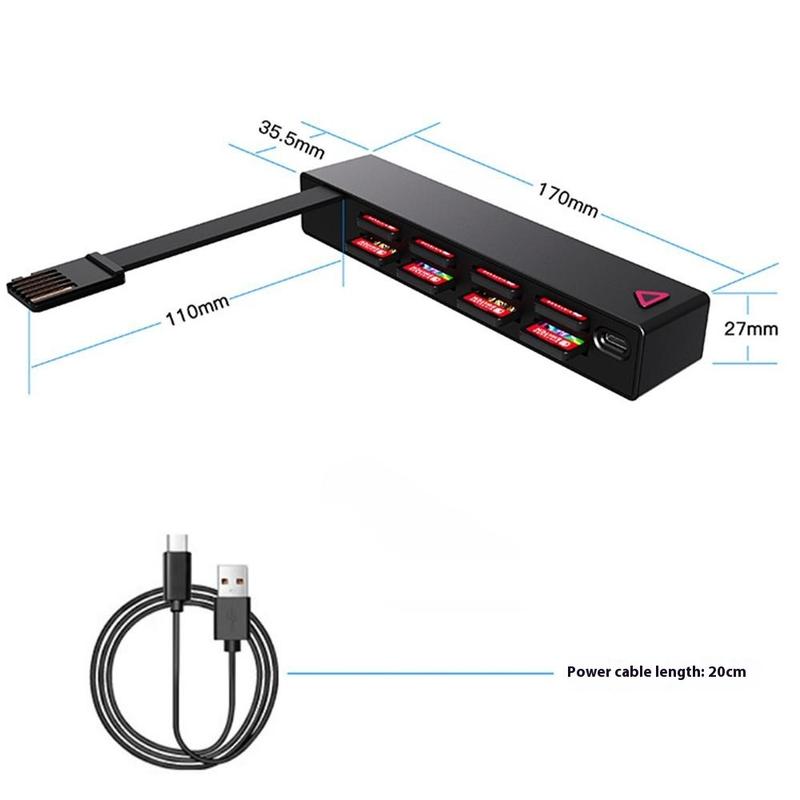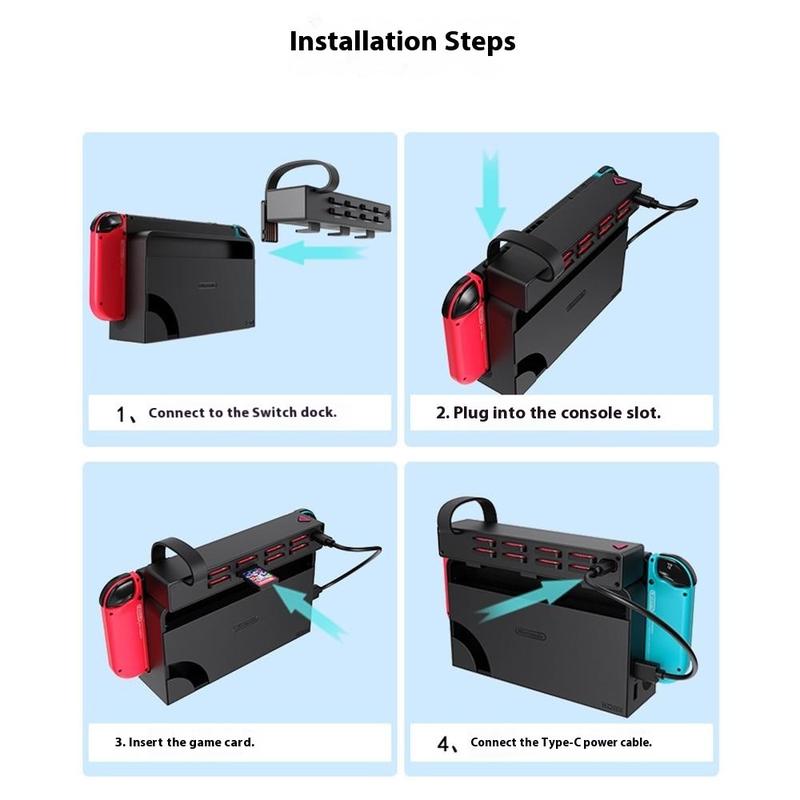 NS02 Cititor de carduri de joc și comutator pentru Nintendo Switch/Switch OLED - Hub de stocare cu 8 sloturi cu telecomandă wireless
