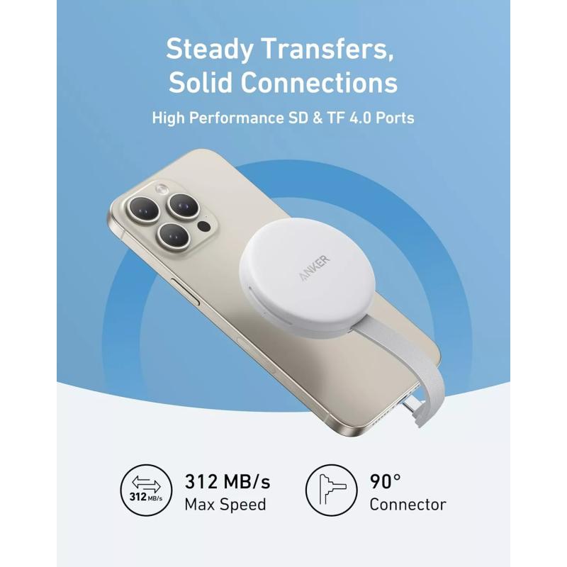 Adaptor USB-C Anker MagGo 3-în-1 cu cititor de carduri SD și TF pentru iPhone 15 și 16 Series - magnetic, 312 MB pe secundă