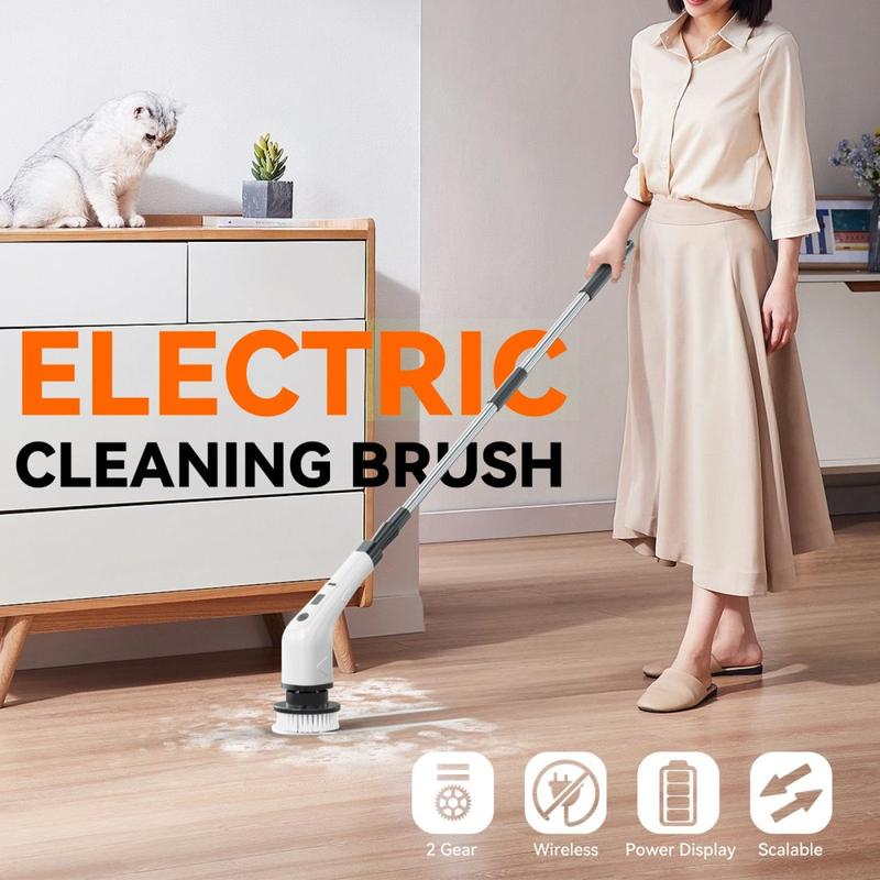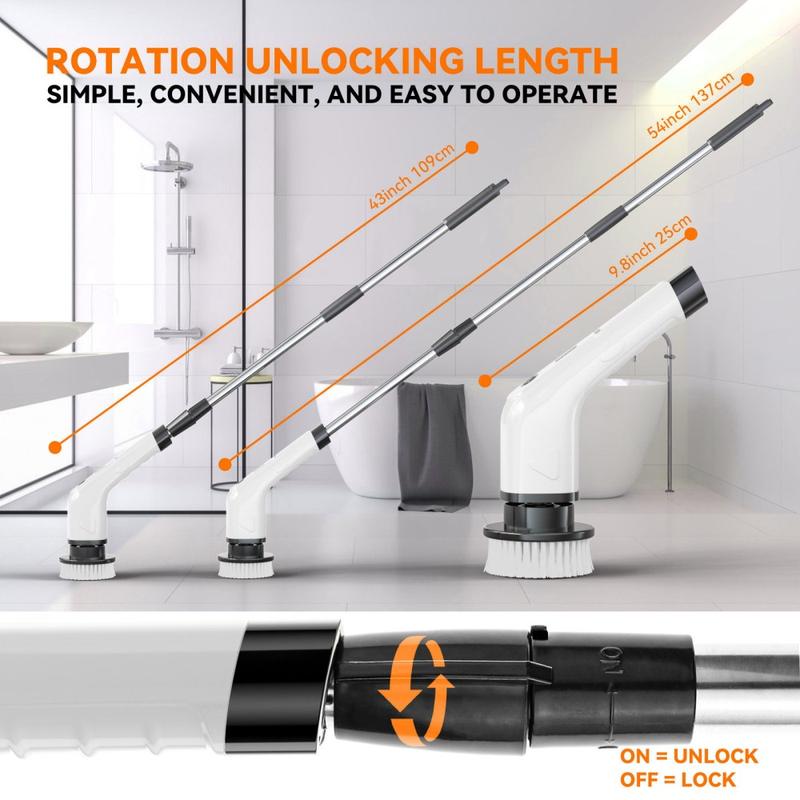 CLE-04 Perie electrică de curățat fără fir cu mâner extensibil - freză rotativă 8 în 1, reîncărcabilă USB-C, impermeabilă IPX7