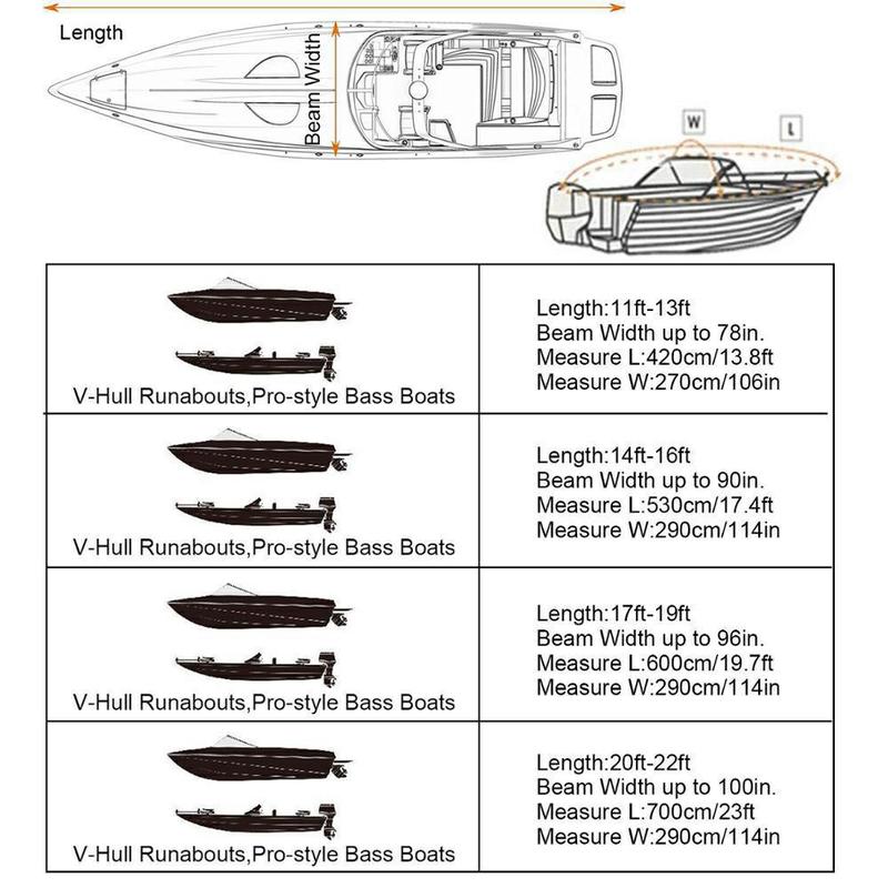 Copertă impermeabilă 210D pentru bărci de 11-13 ft (420 x 270cm) - Copertă de protecție împotriva soarelui și a intemperiilor acoperită cu PU cu curele reglabile, catarame și sac de depozitare