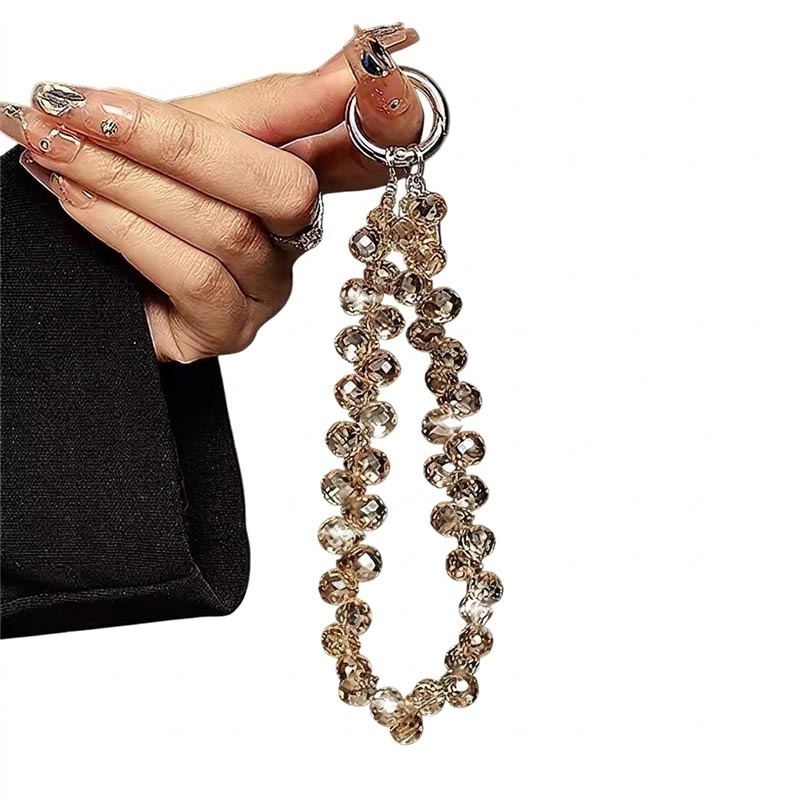 Lanț pentru telefon cu mărgele de cristal de 14cm - brățară de mână și breloc cu capăt transparent