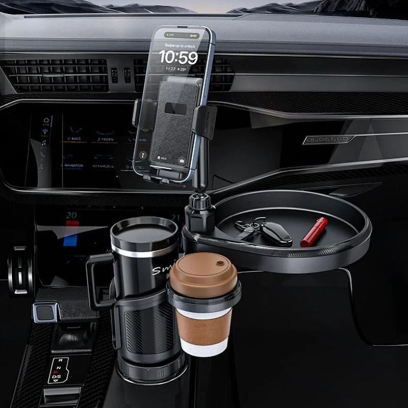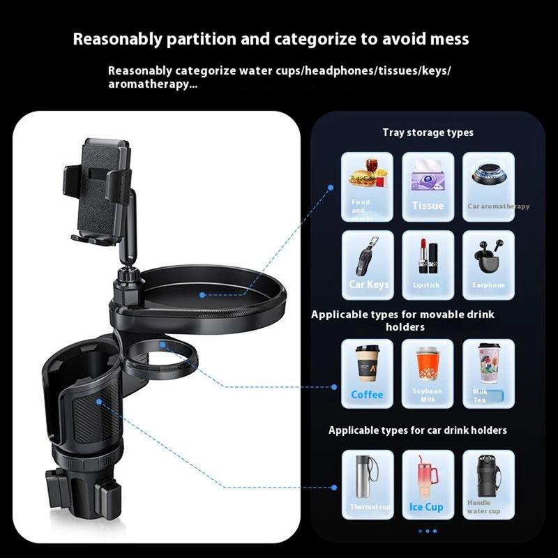 CP242 Tavă de expansiune 4 în 1 pentru suportul pentru pahare auto - suport universal pentru telefon, suport pentru pahare și suport rotativ pentru tavă