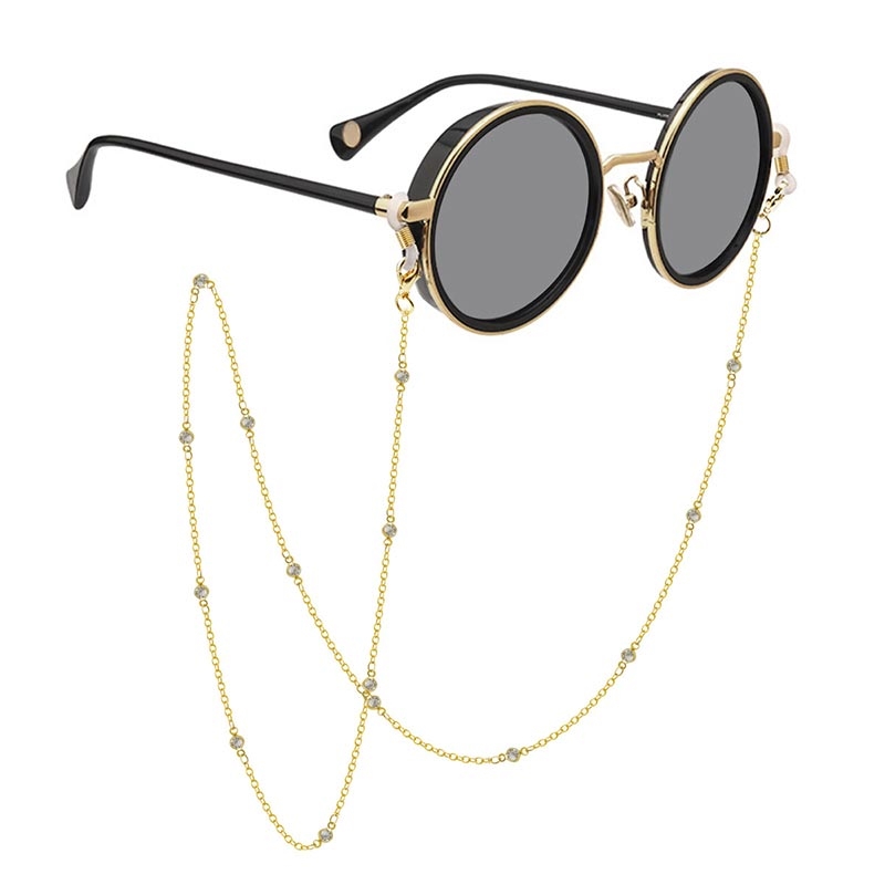 Curea simplă cu lanț pentru ochelari - extremități din cauciuc reglabile și legături decorative
