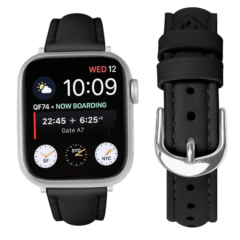 Curea subțire din piele pentru Apple Watch Series 11, Apple Watch Series 10, Apple Watch Series 9, Apple Watch Series 8, Apple Watch SE 3, Apple Watch SE (2022), Apple Watch Series 7, Apple Watch SE, Apple Watch Series 6, Apple Watch Series 5, Apple Watch Series 4, Apple Watch Series 3, Apple Watch Series 2, Apple Watch Series 1 - Curea din piele moale cu cataramă argintie