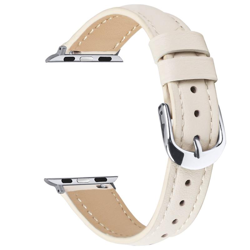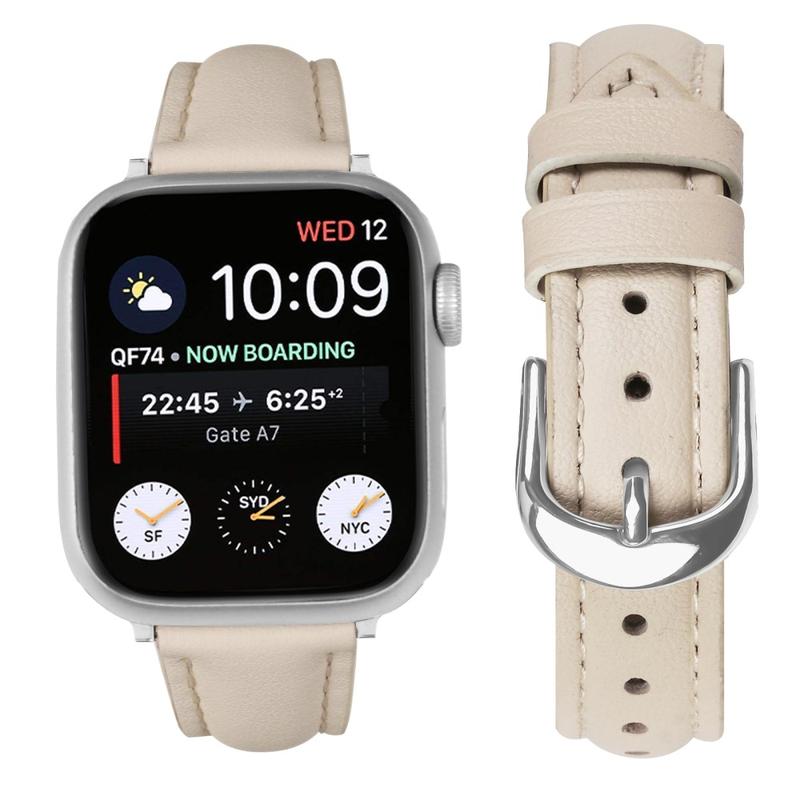 Curea subțire din piele pentru Apple Watch Series 11, Apple Watch Series 10, Apple Watch Series 9, Apple Watch Series 8, Apple Watch SE 3, Apple Watch SE (2022), Apple Watch Series 7, Apple Watch SE, Apple Watch Series 6, Apple Watch Series 5, Apple Watch Series 4, Apple Watch Series 3, Apple Watch Series 2, Apple Watch Series 1 - Curea din piele moale cu cataramă argintie