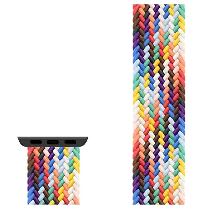 Personalizați-vă ceasul Apple Watch Series Ultra 3/2/Ultra/11/10/9/8/SE 3/(2022)/7/SE/6/5/4/3/2/1 cu această curea din material textil colorat și împletit. Cureaua este reglabilă cu o clemă care se potrivește perfect cu diferite lățimi ale încheieturii mâinii. Fibrele sunt rezistente la transpirație.