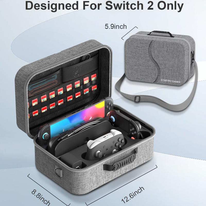 Păstrați Nintendo Switch 2 în siguranță, organizat și gata de călătorie cu Startrc Games Storage Case. Proiectată special pentru consola Nintendo Switch 2 și accesoriile sale, această versiune 2.0 îmbunătățită oferă spațiu de stocare pentru până la 18 carduri de jocuri - cu 4 mai multe decât modelul anterior. Construită cu materiale rezistente la zgârieturi și la șocuri, aceasta oferă protecție fiabilă, rămânând în același timp compactă și elegantă. Carcasa a trecut teste repetate de rezistență la stropire, asigurând că consola și jocurile dvs. rămân în siguranță chiar și în condiții meteorologice imprevizibile. Cu mânerul său confortabil de transport, husa de depozitare a jocurilor Startrc face transportul Switch 2 ușor și convenabil - perfect pentru jocuri acasă, în călătorii sau oriunde în mișcare.