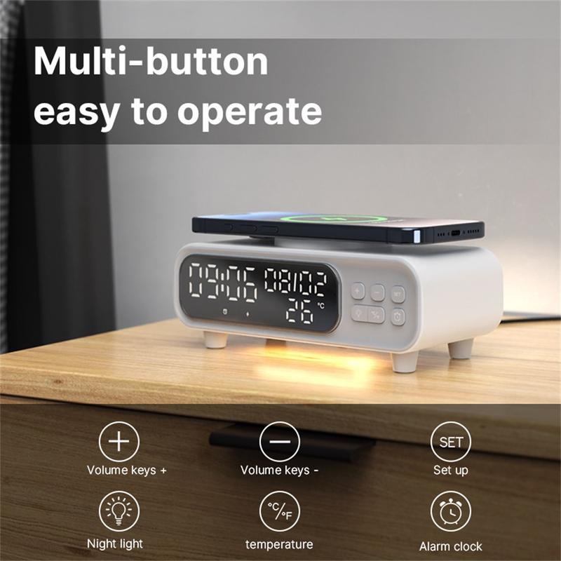 - Design multifuncțional 5 în 1 - Combină un încărcător wireless de 15W, ceas cu alarmă, calendar, afișaj al temperaturii și lumină de noapte.