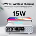 D15 Stație de încărcare wireless multifuncțională 5 în 1 - încărcător rapid de 15 W cu lumină de noapte, ceas cu alarmă, calendar și afișaj de temperatură