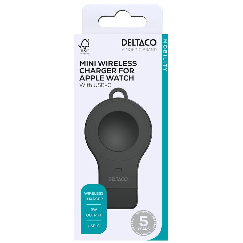 Deltaco AWC-102 Mini încărcător wireless pentru Apple Watch - USB-C - 2W