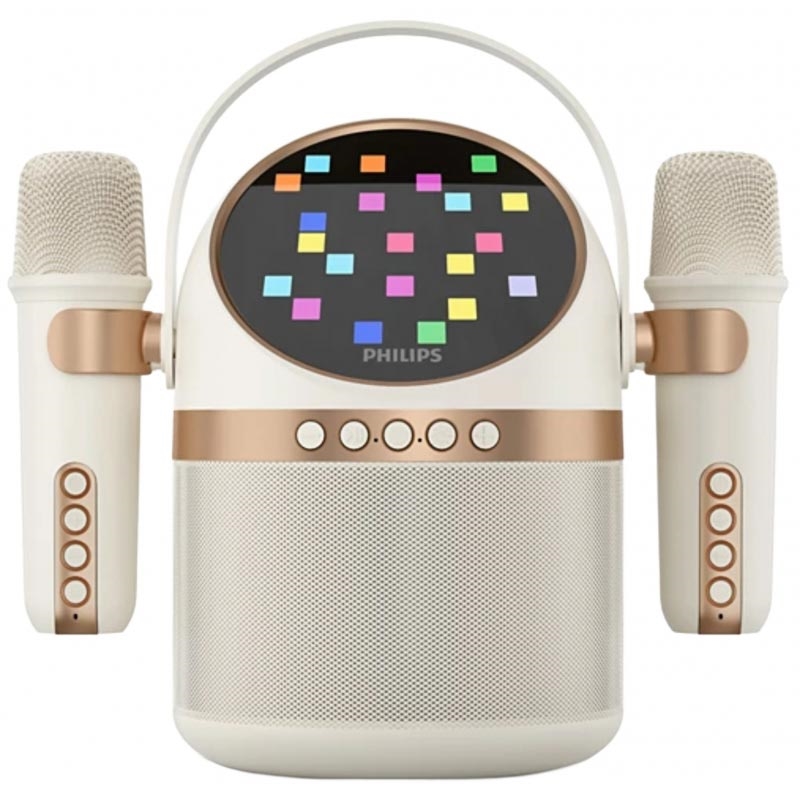 Difuzor portabil Bluetooth pentru karaoke Philips TAS2509WT/00 - 5 W RMS (10 W max.), 2 microfoane fără fir, lumini LED, baterie cu autonomie de 15 ore, USB-C