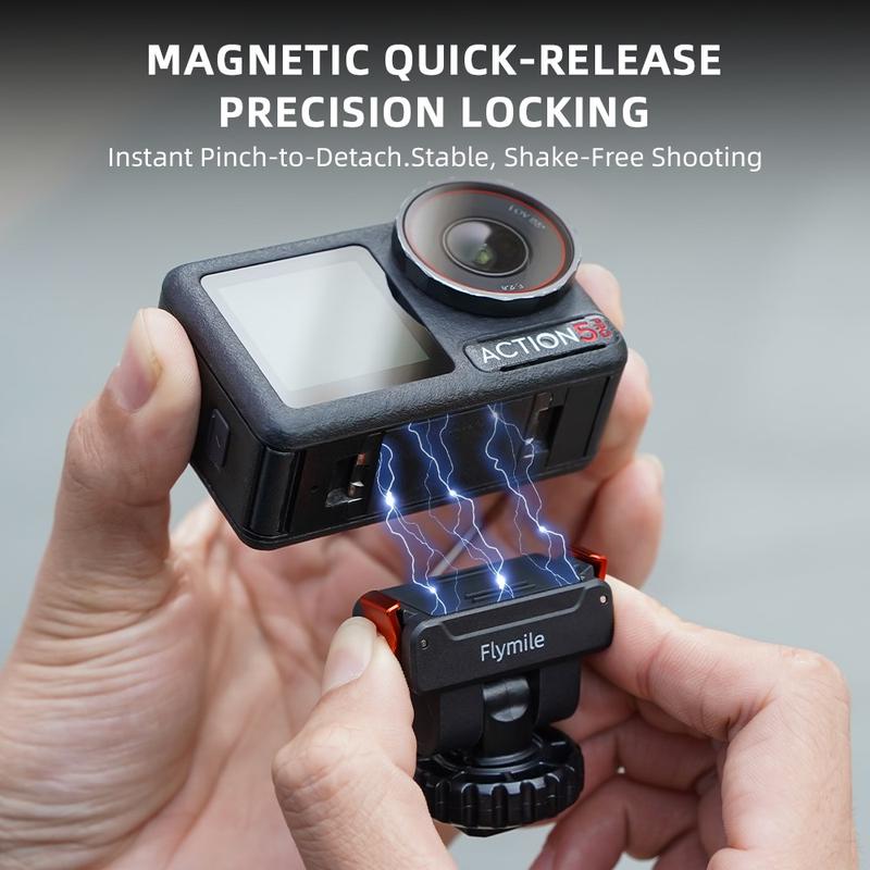 Suport magnetic cu eliberare rapidă Flymile pentru DJI Osmo Action 5 Pro/4/3 - Adaptor Cold Shoe cu înclinare de 180° și filet de 1/4"