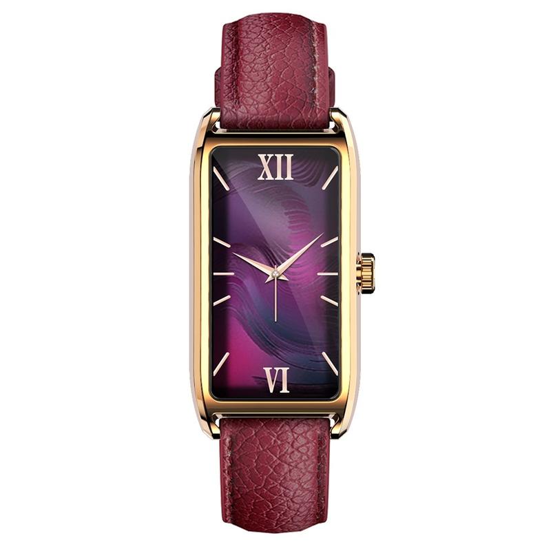 Inspirat de orologeria modernă, Dora T are o carcasă pătrată cu margini netede, rotunjite și linii orizontale delicate care emană precizie mecanică și rafinament. Cureaua sa din piele super-fibră cu cataramă din oțel inoxidabil asigură o potrivire moale și confortabilă pe orice încheietură.