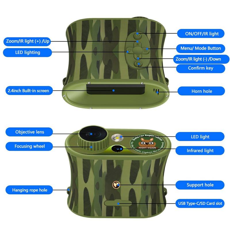 DT15 2.5K Binoclu digital de vedere pe timp de noapte cu cameră pentru copii - Fotografii de 48 MP, zoom digital 8x + zoom optic 4x, ecran IPS de 2,4", IR 850 nm (7 niveluri), USB-C, baterie 2200mAh