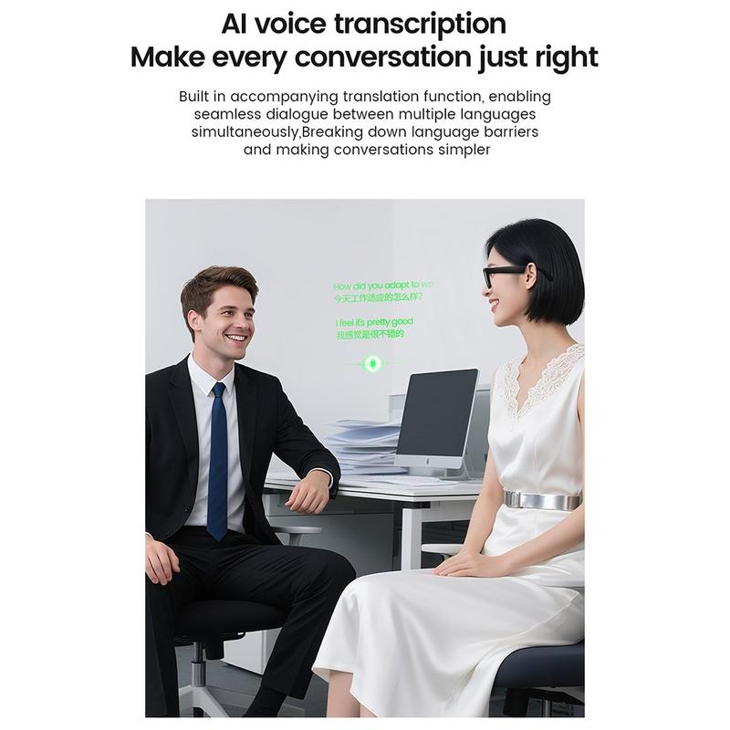 Ochelarii inteligenți precum E02 utilizează recunoașterea imaginilor prin inteligență artificială și traducerea în timp real pentru a reduce instantaneu diferențele de comunicare. Rolul său dublu, atât ca ochelari cu cameră foto, cât și ca dispozitiv audio wireless, îl transformă într-un gadget futurist all-in-one atât pentru productivitate, cât și pentru petrecerea timpului liber.